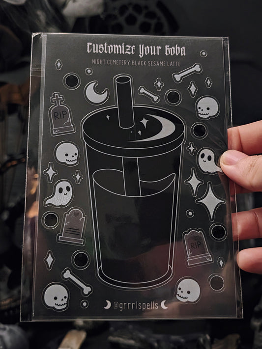 Night Cemetery Black Sesame Latte - Customize Your Boba Sticker Sheet