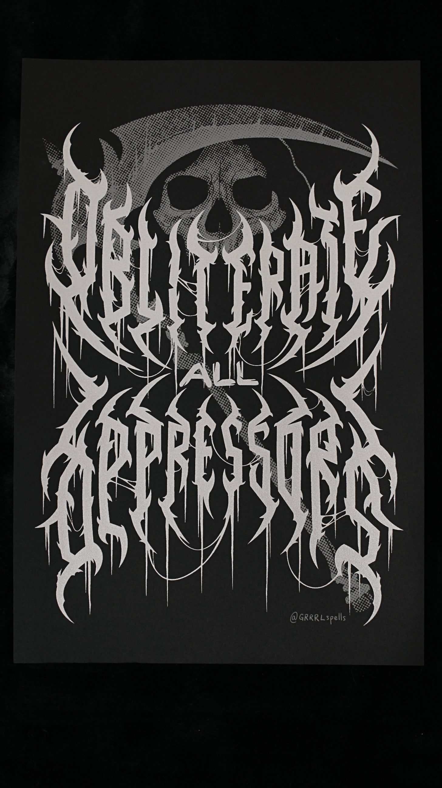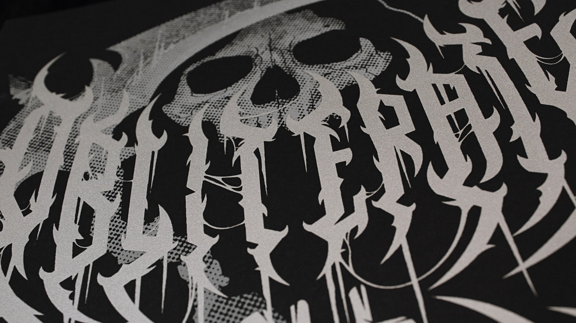 • Screen printed with grey and shiny metallic silver ink on coverstock black paper